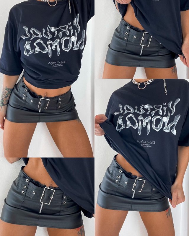 Nada discreta, tudo provocante. A saia traz o couro PU com brilho sutil, modelagem justa que valoriza o corpo e o destaque principal: fivela oversized que rouba a cena.
