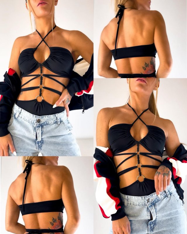 Amarra nas costas e pescoço pra ajuste perfeito — mais justo, mais solto, mais seu.